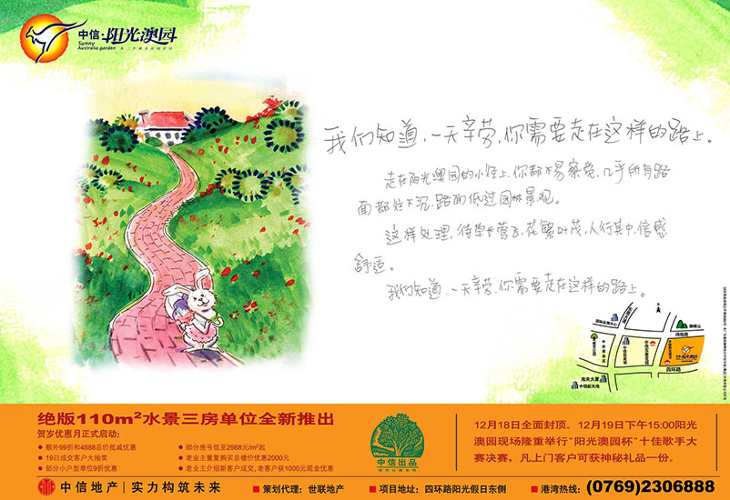中信凯旋城围绕“公园生活”这一概念进行诉求。中信德方斯、中信御园目标对象不同,但品牌的核心价值则保持一致,那就是2000年开始的“人的归属感”。